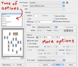 When you choose to print from a file with multiple artboards each artboard is one printed page (at least with the setting I utilize) and you have control over which artboards are printed. Plus there are tons of options for printing…