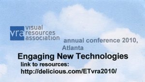 The Visual Resources Association (hereafter referred to as the “VRA”) is an international organization of image professionals. Members come from diverse ranges of institutions, from public and private universities both large and small to major museums and cultural institutions. The annual conference affords attendees the opportunity to develop professionally through workshops, sessions and professional networking.